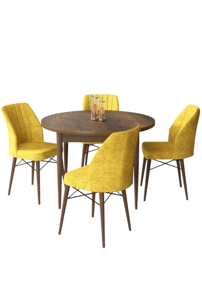 HANAH HOME Set Trpezarijski sto i 4 stolice Rox Baroque Mustard