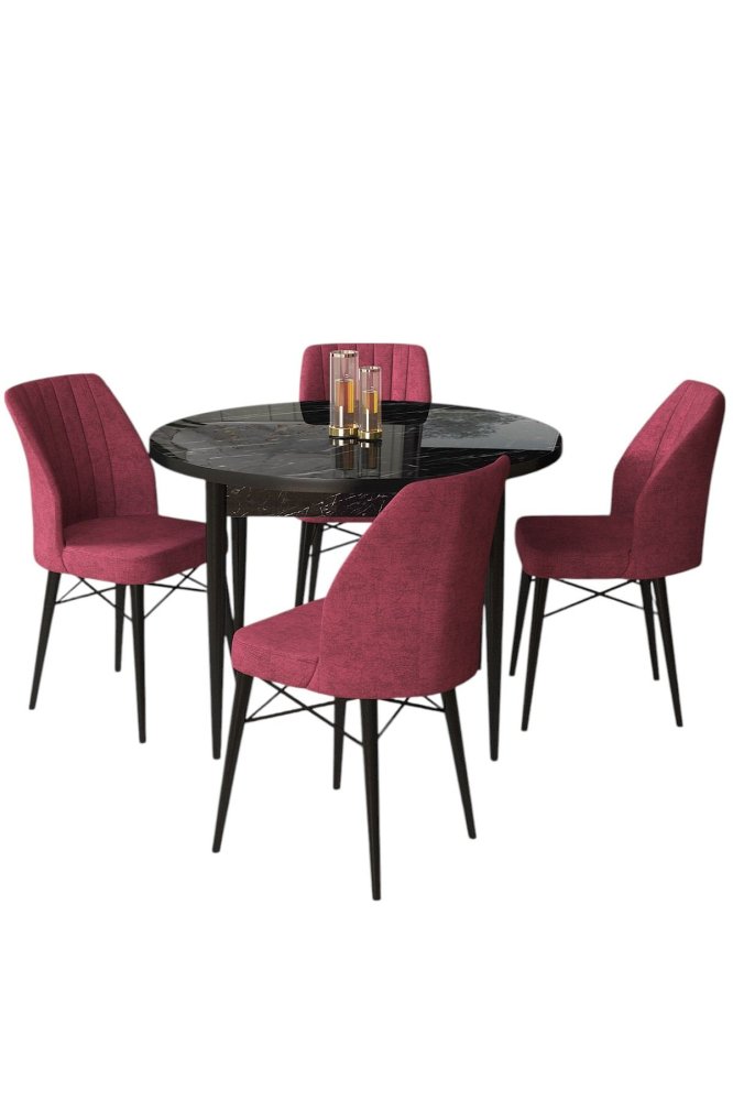 HANAH HOME Set Trpezarijski sto i 4 stolice Rox Black Marble Burgundy