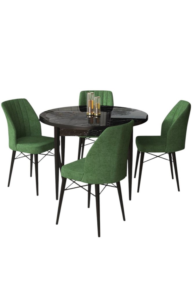 HANAH HOME Set Trpezarijski sto i 4 stolice Rox Black Marble Khaki