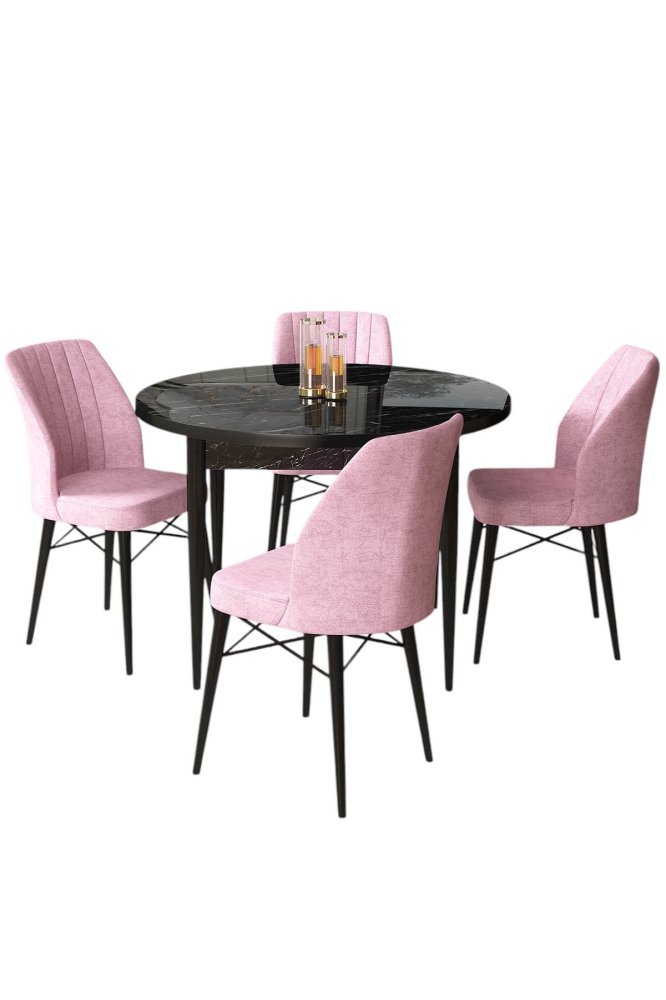 HANAH HOME Set Trpezarijski sto i 4 stolice Rox Black Marble Pink