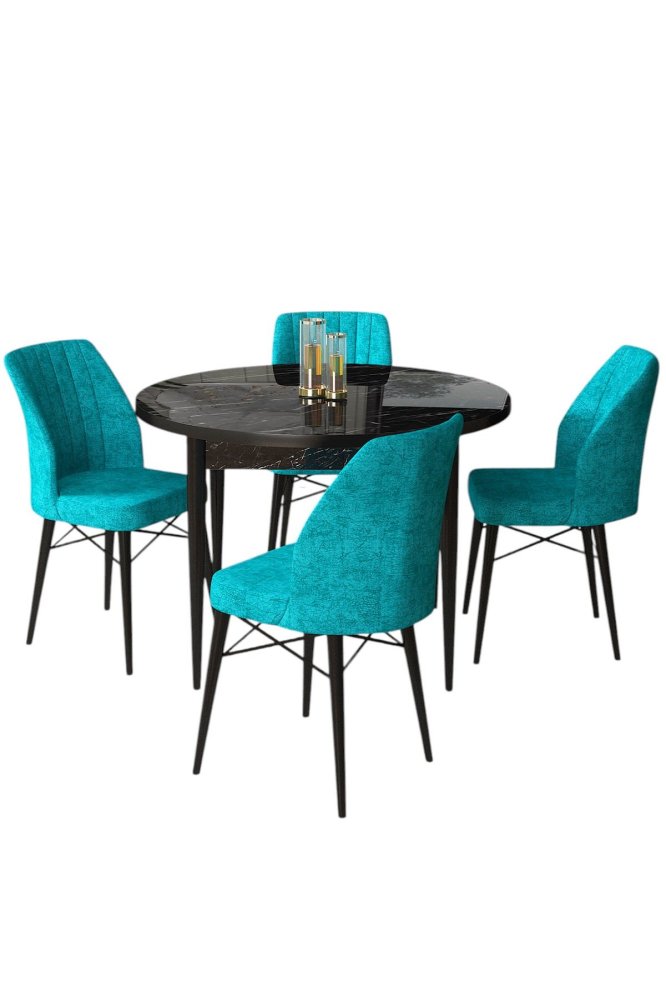 HANAH HOME Set Trpezarijski sto i 4 stolice Rox Black Marble Turquoise