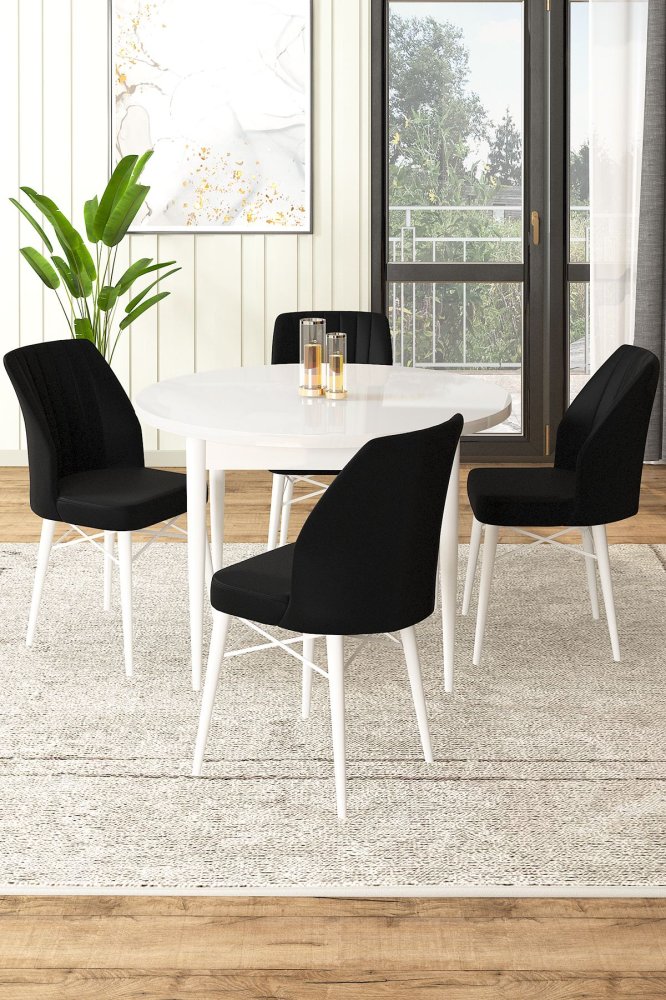 HANAH HOME Set Trpezarijski sto i 4 stolice Rox White Black