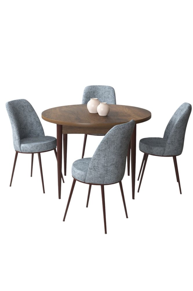 | Specifikacija | Trpezarijski set: Sto i 4 stolice Materijal ploče stola: 100% Iverica presvučena melaminom Materijal nogara: Metal Materijal okvira stolica: Metal Materijal tkanine: Jerry tkanina Punjenje sedišta: 28 DNS pena Punjenje naslona: 22 DNS pena Dimenzije stola: Širina: 90 cm Visina: 75 cm Dubina: 90 cm Dimenzije stolice: Širina: 45 cm Visina: 91 cm Dubina: 42 cm Visina sedišta: 47 cm Broj stolica u setu: 4 |