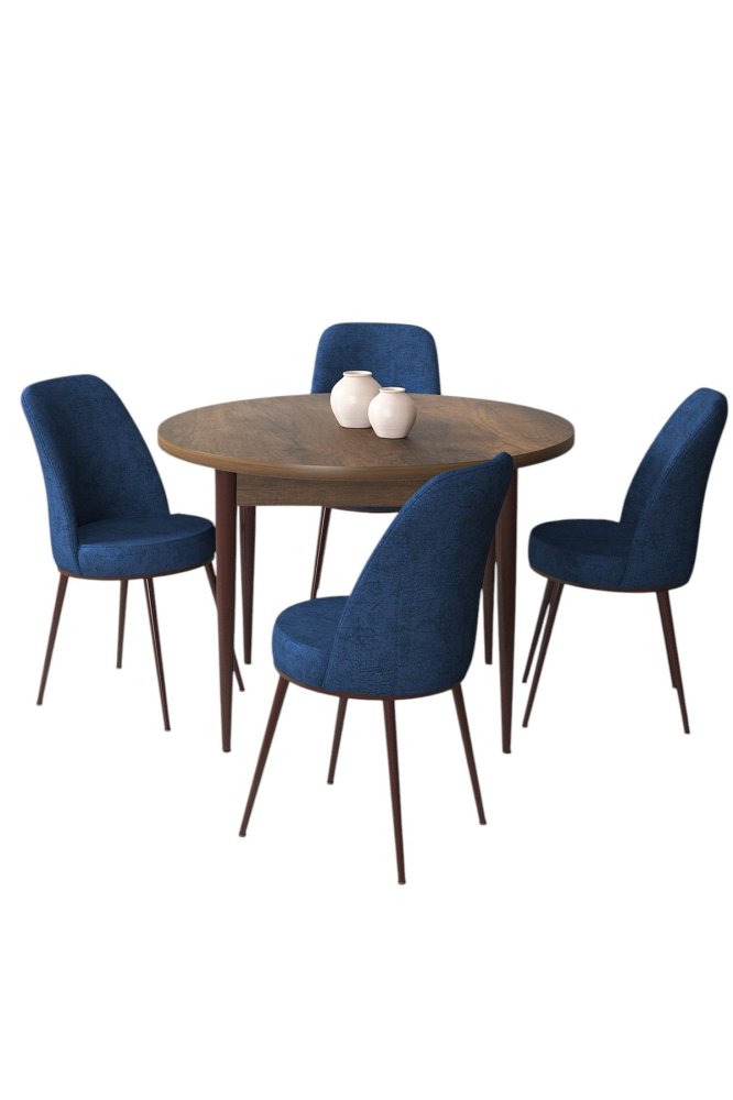 HANAH HOME Set Trpezarijski sto i 4 stolice Tor Baroque Navy Blue