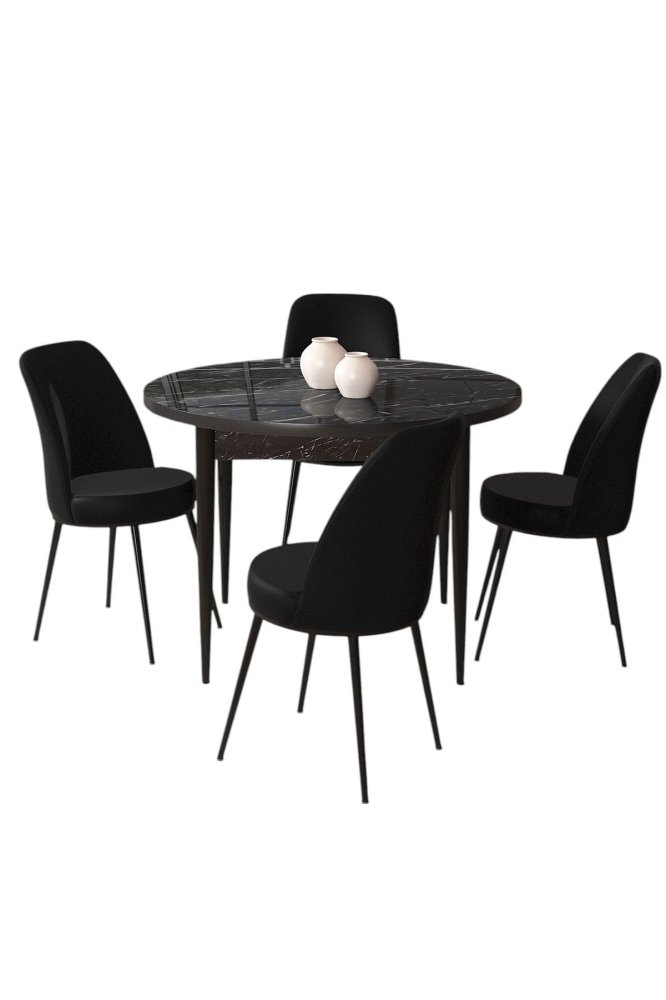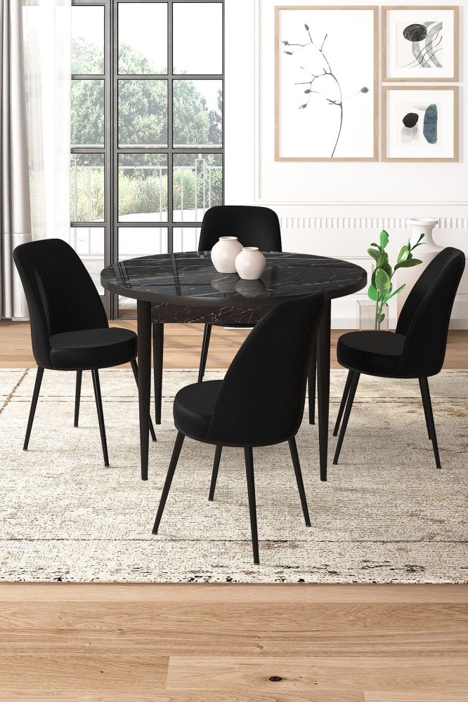 HANAH HOME Set Trpezarijski sto i 4 stolice Tor Black Marble Black
