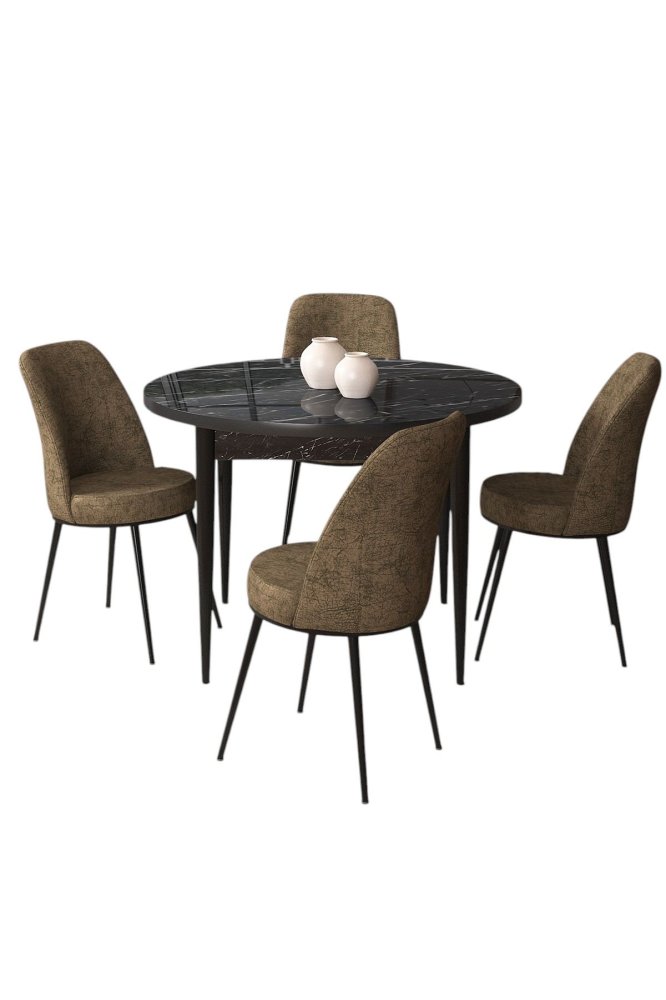 | Specifikacija | Trpezarijski set: Sto i 4 stolice Materijal ploče stola: 100% Iverica presvučena melaminom Materijal nogara: Metal Materijal okvira stolica: Metal Materijal tkanine: Jerry tkanina Punjenje sedišta: 28 DNS pena Punjenje naslona: 22 DNS pena Dimenzije stola: Širina: 90 cm Visina: 75 cm Dubina: 90 cm Dimenzije stolice: Širina: 45 cm Visina: 91 cm Dubina: 42 cm Visina sedišta: 47 cm Broj stolica u setu: 4 |