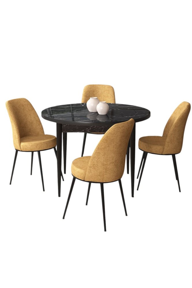 HANAH HOME Set Trpezarijski sto i 4 stolice Tor Black Marble Cappuccino