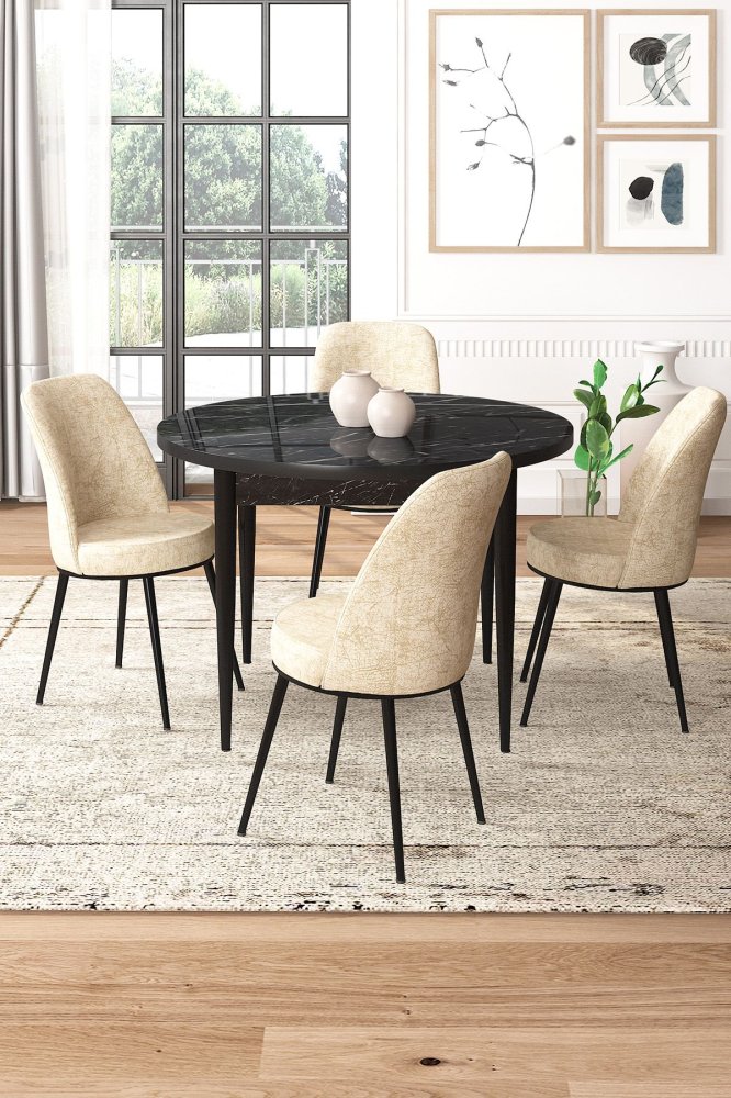 | Specifikacija | Trpezarijski set: Sto i 4 stolice Materijal ploče stola: 100% Iverica presvučena melaminom Materijal nogara: Metal Materijal okvira stolica: Metal Materijal tkanine: Jerry tkanina Punjenje sedišta: 28 DNS pena Punjenje naslona: 22 DNS pena Dimenzije stola: Širina: 90 cm Visina: 75 cm Dubina: 90 cm Dimenzije stolice: Širina: 45 cm Visina: 91 cm Dubina: 42 cm Visina sedišta: 47 cm Broj stolica u setu: 4 |