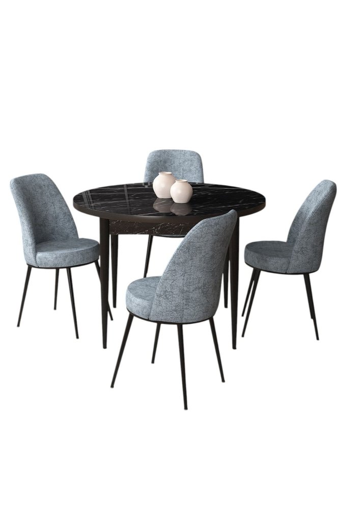 | Specifikacija | Trpezarijski set: Sto i 4 stolice Materijal ploče stola: 100% Iverica presvučena melaminom Materijal nogara: Metal Materijal okvira stolica: Metal Materijal tkanine: Jerry tkanina Punjenje sedišta: 28 DNS pena Punjenje naslona: 22 DNS pena Dimenzije stola: Širina: 90 cm Visina: 75 cm Dubina: 90 cm Dimenzije stolice: Širina: 45 cm Visina: 91 cm Dubina: 42 cm Visina sedišta: 47 cm Broj stolica u setu: 4 |