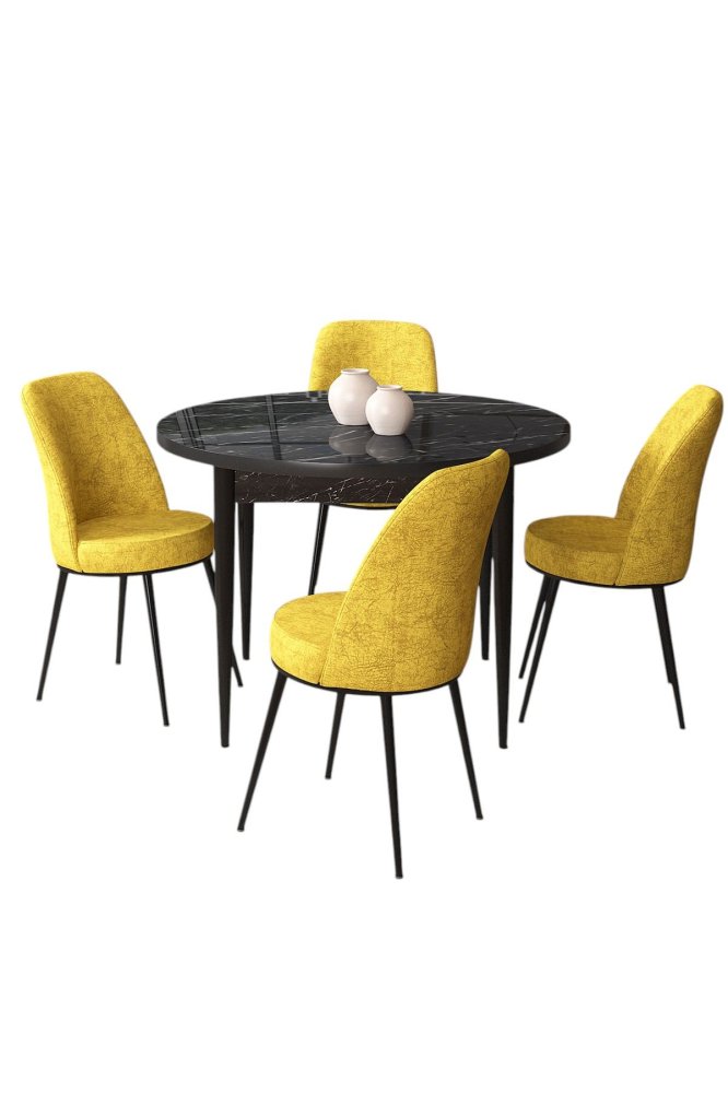 HANAH HOME Set Trpezarijski sto i 4 stolice Tor Black Marble Mustard