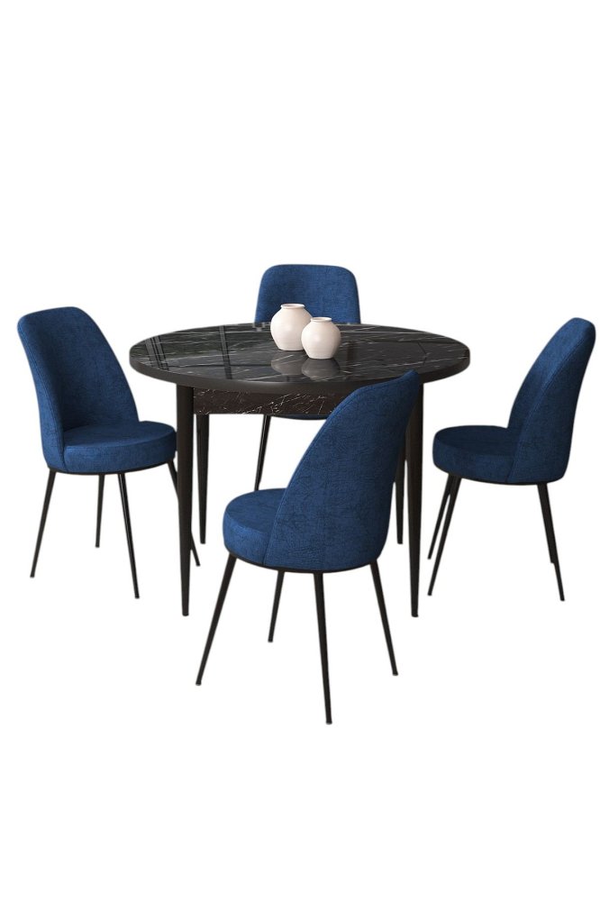 HANAH HOME Set Trpezarijski sto i 4 stolice Tor Black Marble Navy Blue