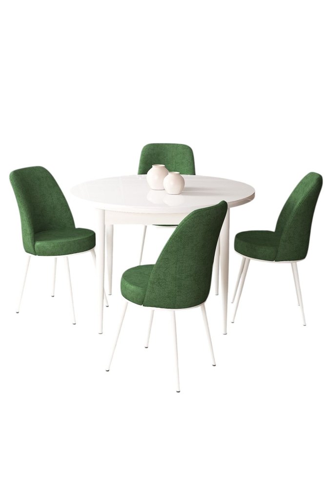 HANAH HOME Set Trpezarijski sto i 4 stolice Tor White Khaki