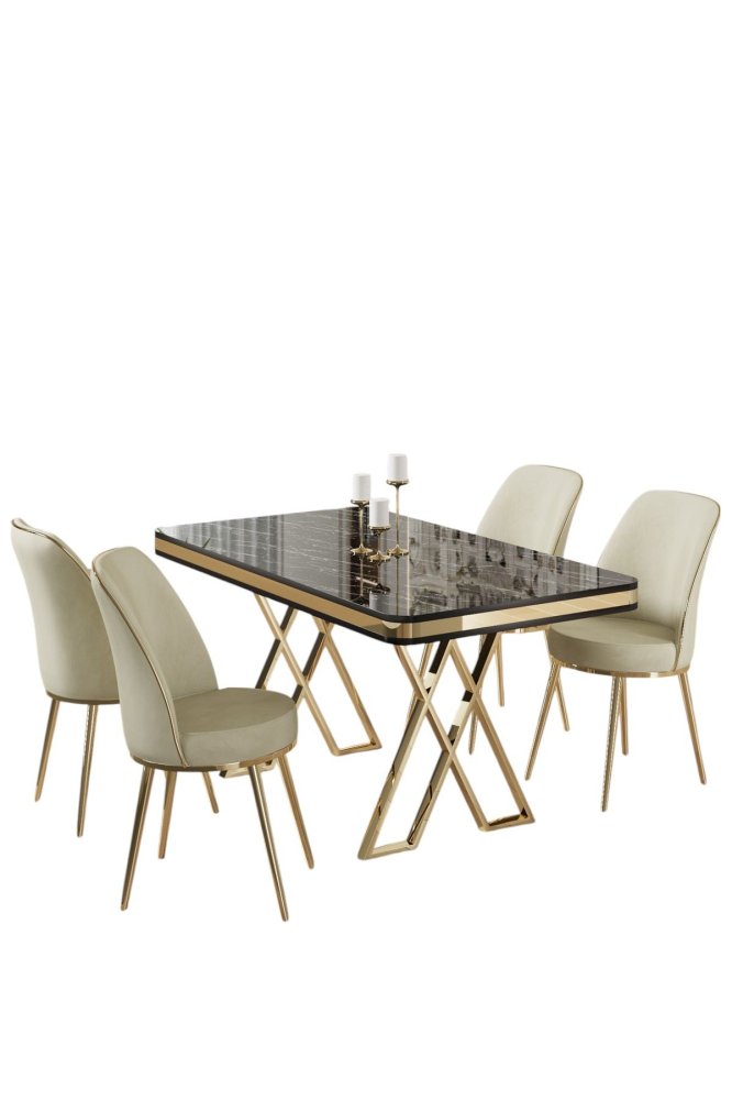HANAH HOME Set Trpezarijski sto i 4 stolice Vals Black Marble Gold Cream