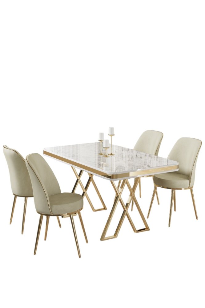 HANAH HOME Set Trpezarijski sto i 4 stolice Vals White Gold Cream