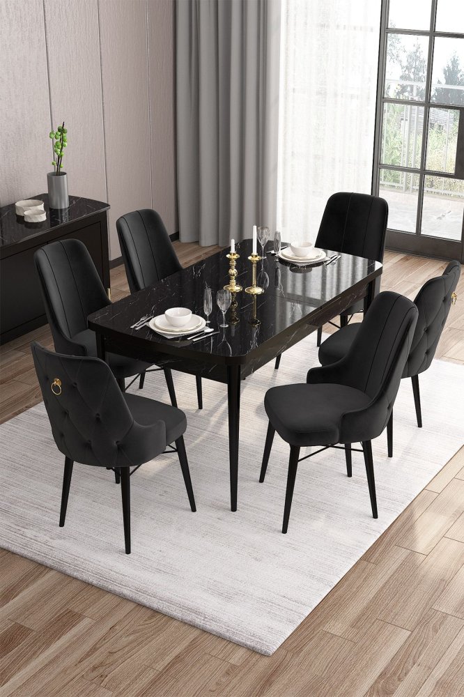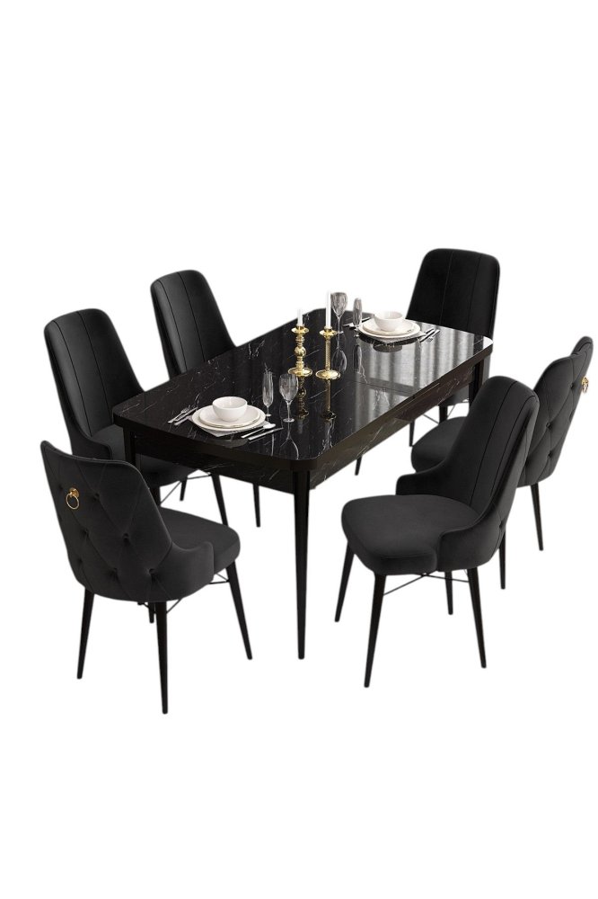 HANAH HOME Set Trpezarijski sto i 6 stolica Are Black Marble Black
