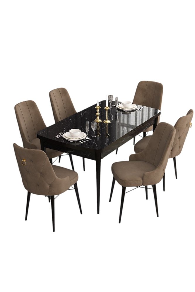 HANAH HOME Set Trpezarijski sto i 6 stolica Are Black Marble Brown