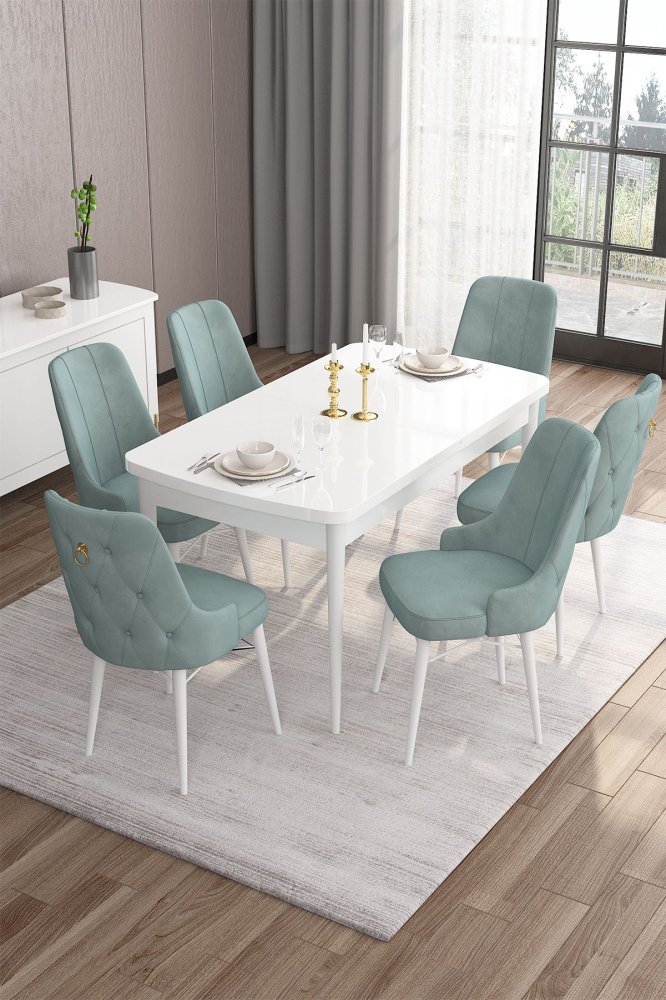 HANAH HOME Set Trpezarijski sto i 6 stolica Are White Sea Green