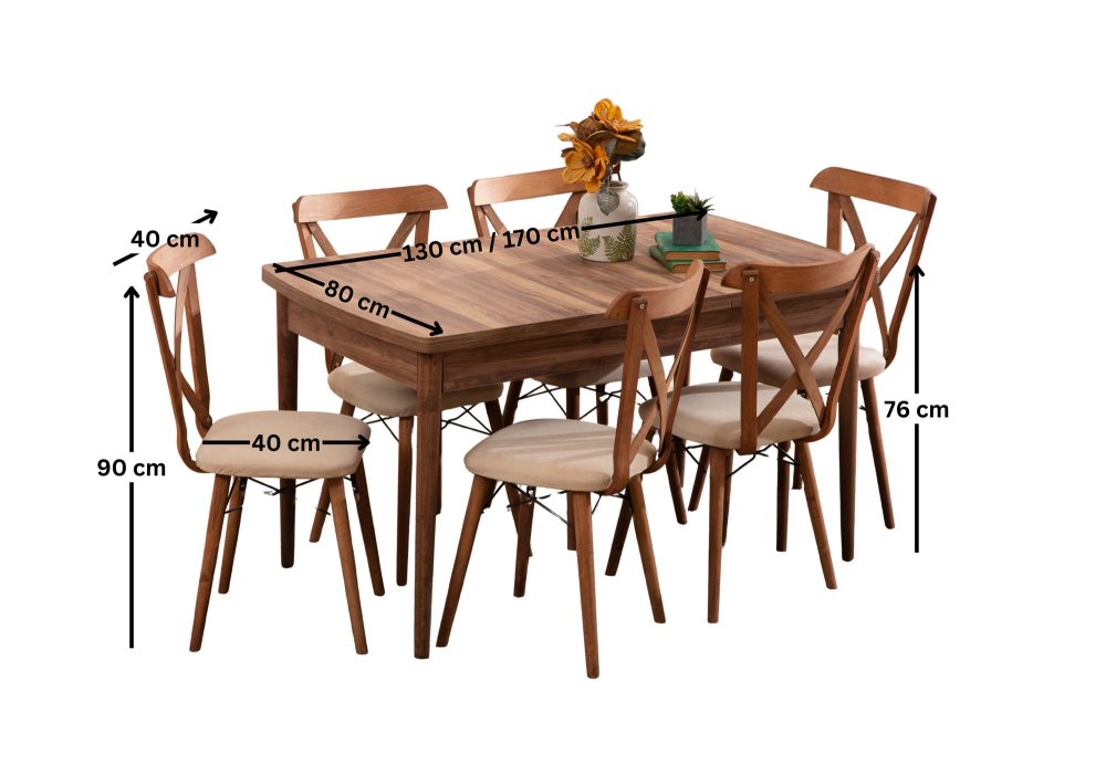 HANAH HOME Set Trpezarijski sto i 6 stolica Cenova Brown