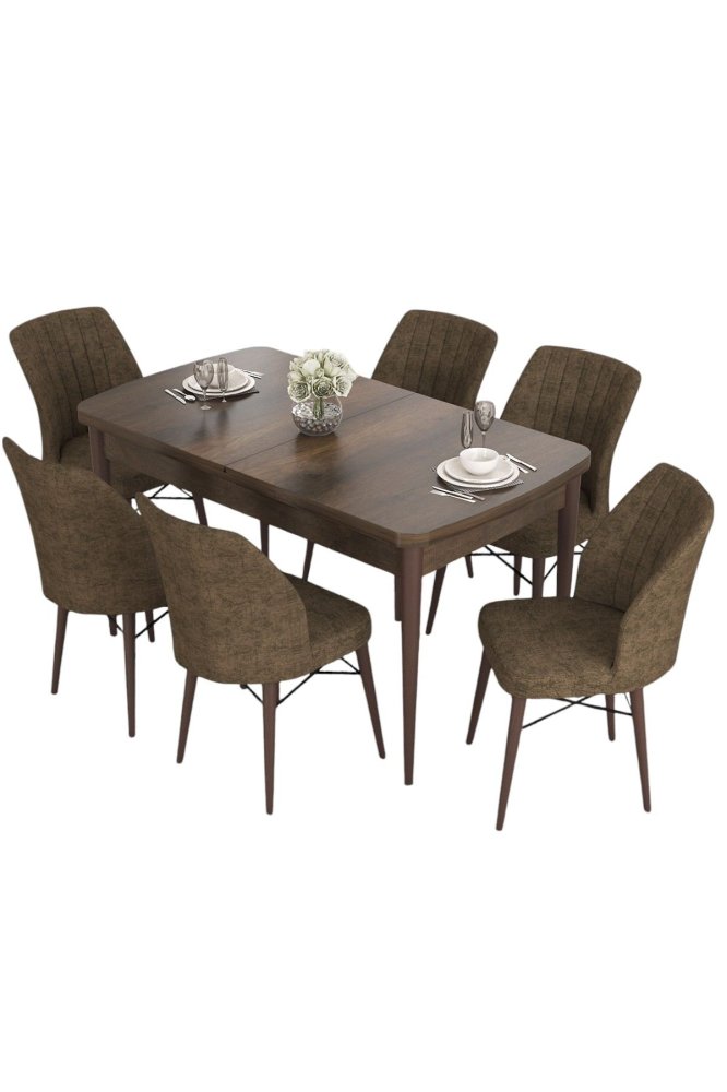 HANAH HOME Set Trpezarijski sto i 6 stolica Eva Baroque Brown
