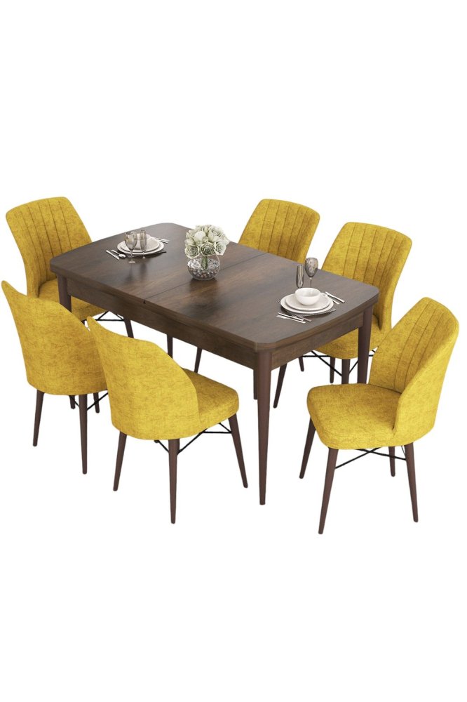 HANAH HOME Set Trpezarijski sto i 6 stolica Eva Baroque Mustard