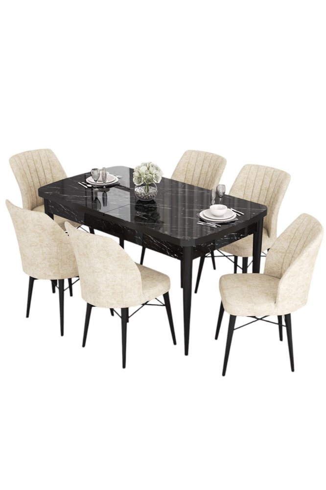 HANAH HOME Set Trpezarijski sto i 6 stolica Eva Black Marble Cream