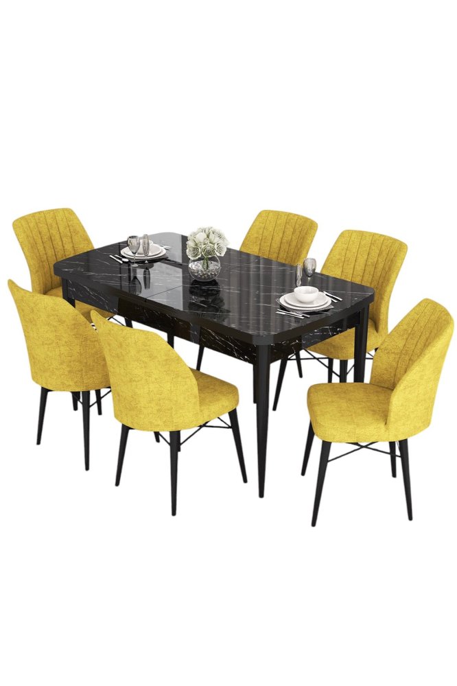 HANAH HOME Set Trpezarijski sto i 6 stolica Eva Black Marble Mustard