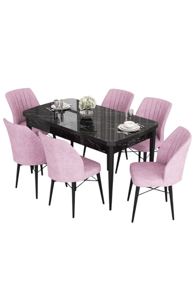 HANAH HOME Set Trpezarijski sto i 6 stolica Eva Black Marble Pink
