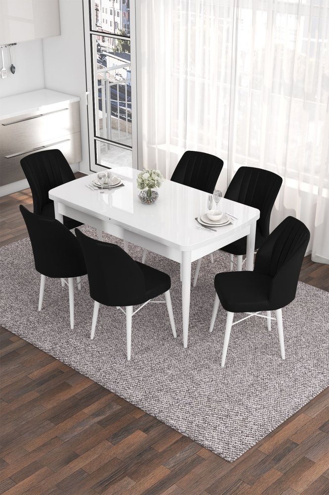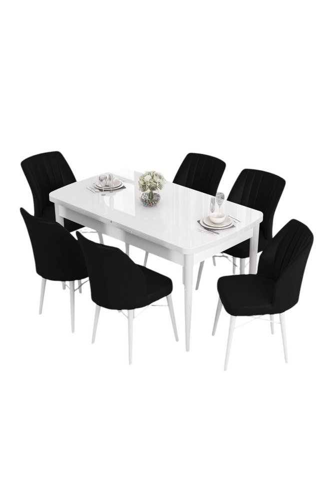 HANAH HOME Set Trpezarijski sto i 6 stolica Eva White Black