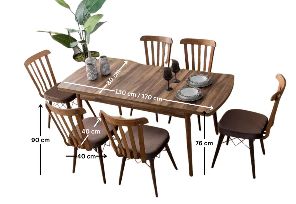 HANAH HOME Set Trpezarijski sto i 6 stolica Fergana Brown