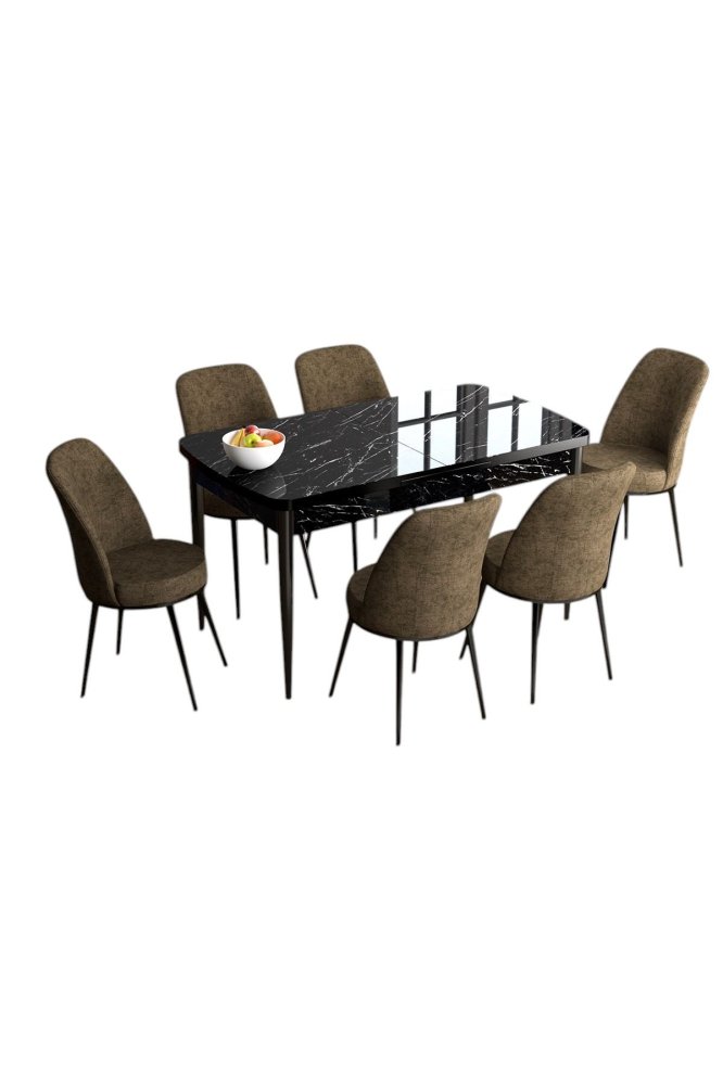 HANAH HOME Set Trpezarijski sto i 6 stolica Han Black Marble Brown
