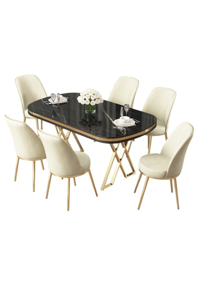 | Specifikacija | Trpezarijski set: Sto i 6 stolica Materijal ploče stola: 100% Lakirana ploča Materijal nogara: Metal Materijal okvira stolica: Metal Materijal tkanine: Babyface tkanina Punjenje sedišta: 28 DNS pena Punjenje naslona: 22 DNS pena Dimenzije stola: Širina: 168 cm Visina: 76 cm Dubina: 90 cm Dimenzije stolice: Širina: 45 cm Visina: 91 cm Dubina: 42 cm Visina sedišta: 47 cm Broj stolica u setu: 6 |
