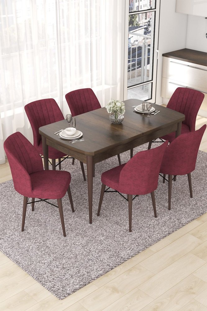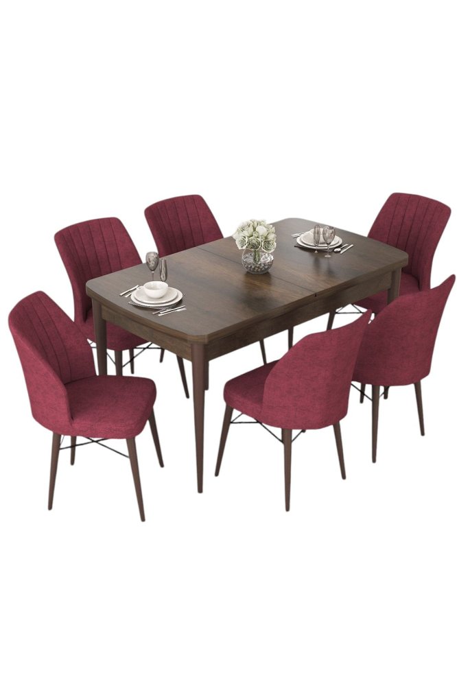 HANAH HOME Set Trpezarijski sto i 6 stolica Nef Baroque Burgundy