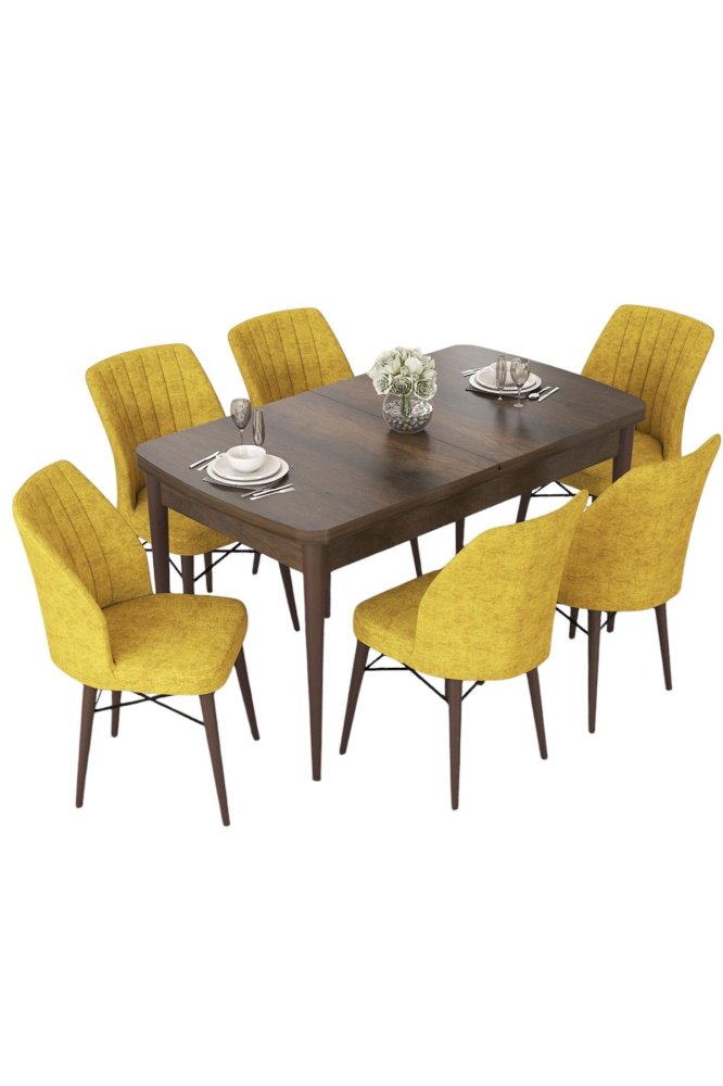 HANAH HOME Set Trpezarijski sto i 6 stolica Nef Baroque Mustard