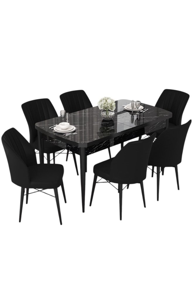 HANAH HOME Set Trpezarijski sto i 6 stolica Nef Black Marble Black