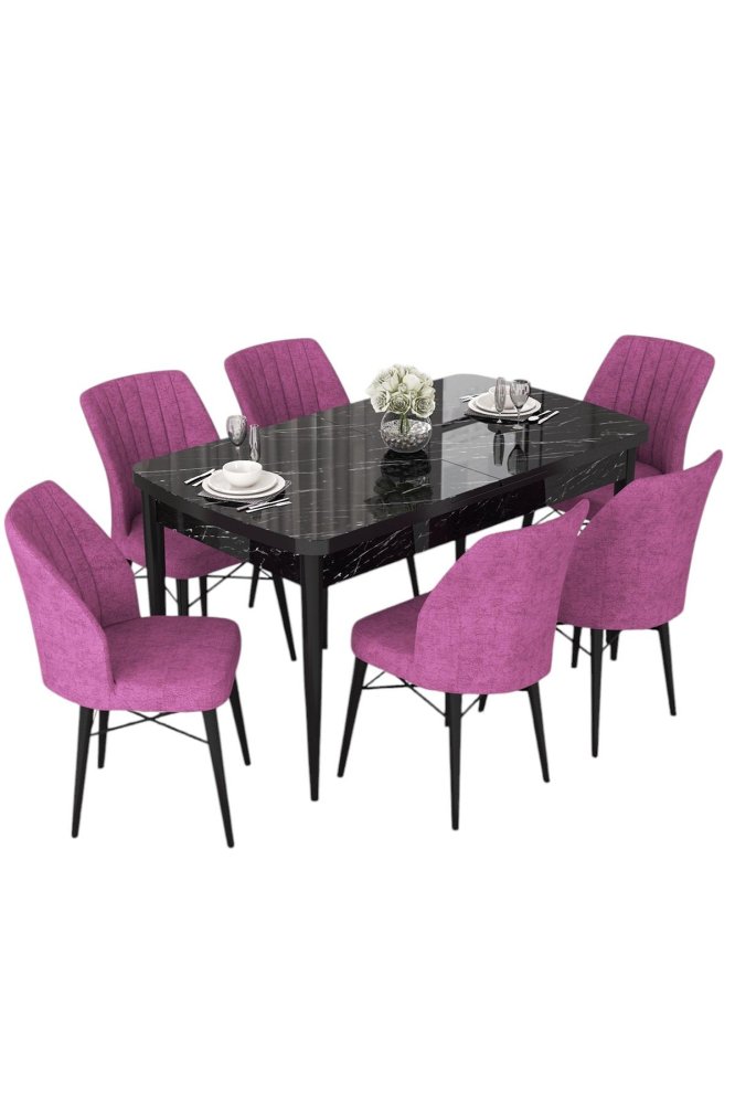 HANAH HOME Set Trpezarijski sto i 6 stolica Nef Black Marble Purple
