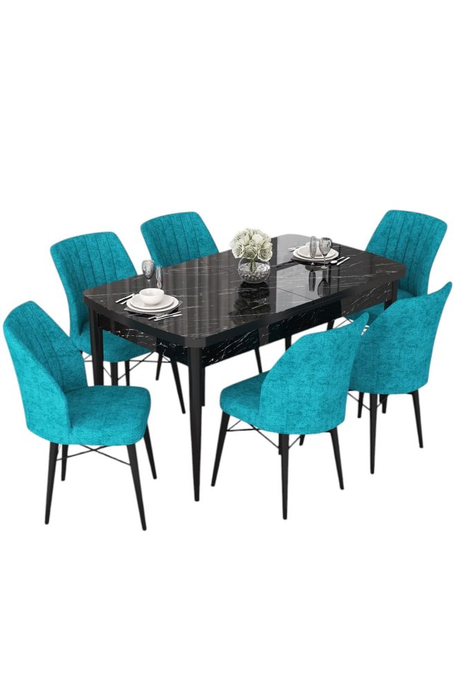 HANAH HOME Set Trpezarijski sto i 6 stolica Nef Black Marble Turquoise