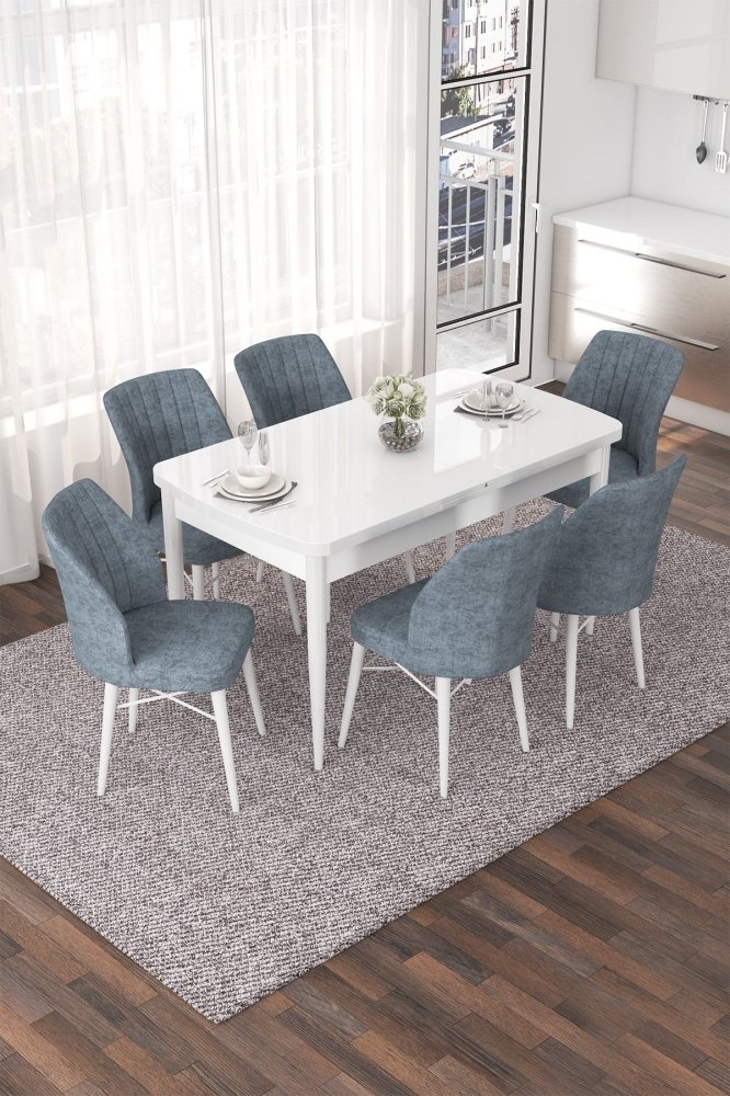 | Specifikacija | Trpezarijski set: Sto i 6 stolica Materijal ploče stola: 100% Medijapan Materijal nogara stola: Drvo Materijal okvira stolica: Metal Materijal nogara stolica: Drvo Materijal tkanine: Jerry tkanina Punjenje sedišta: 28 DNS pena Punjenje naslona: 22 DNS pena Dimenzije stola: Širina: 114 cm Visina: 78 cm Dubina: 70 cm Dimenzije razvučenog stola: Širina: 144 cm Visina: 78 cm Dubina: 70 cm Dimenzije stolice: Širina: 45 cm Visina: 90 cm Dubina: 42 cm Visina sedišta: 46 cm Broj stolica u setu: 6 |