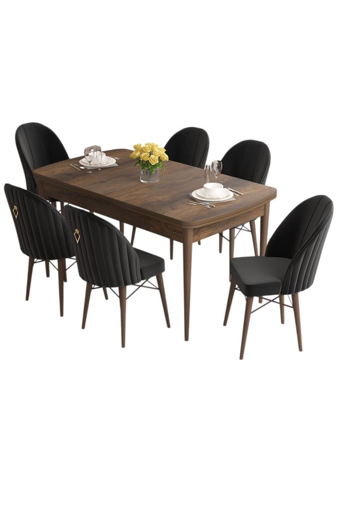 HANAH HOME Set Trpezarijski sto i 6 stolica Roz Baroque Black
