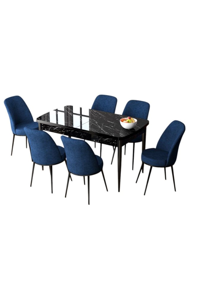 HANAH HOME Set Trpezarijski sto i 6 stolica Zen Black Marble Navy Blue