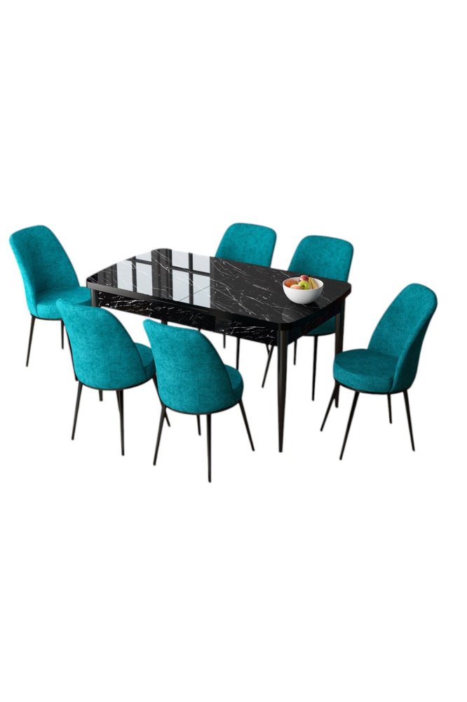 HANAH HOME Set Trpezarijski sto i 6 stolica Zen Black Marble Turquoise