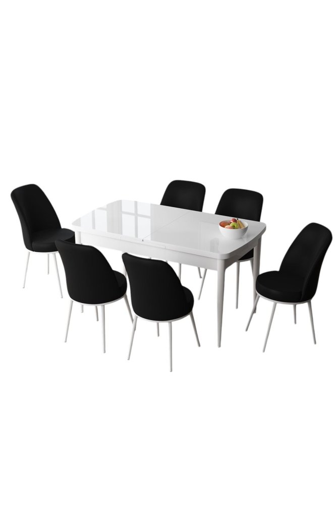 HANAH HOME Set Trpezarijski sto i 6 stolica Zen White Black