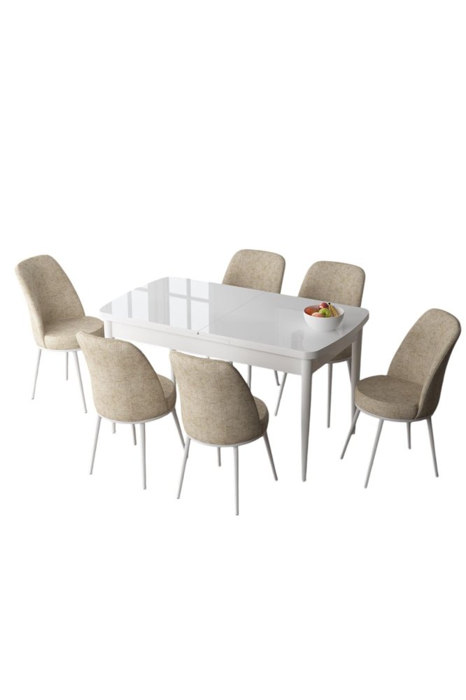| Specifikacija |  Trpezarijski set: Sto i 6 stolica Materijal ploče stola: 100% Medijapan Materijal nogara: Metal Materijal okvira stolica: Metal Materijal tkanine: Jerry tkanina Punjenje sedišta: 28 DNS pena Punjenje naslona: 22 DNS pena Dimenzije stola: Širina: 132 cm Visina: 78 cm Dubina: 80 cm Dimenzije razvučenog stola: Širina: 170 cm Visina: 78 cm Dubina: 80 cm Dimenzije stolice: Širina: 45 cm Visina: 91 cm Dubina: 42 cm Visina sedišta: 47 cm Broj stolica u setu: 6  |