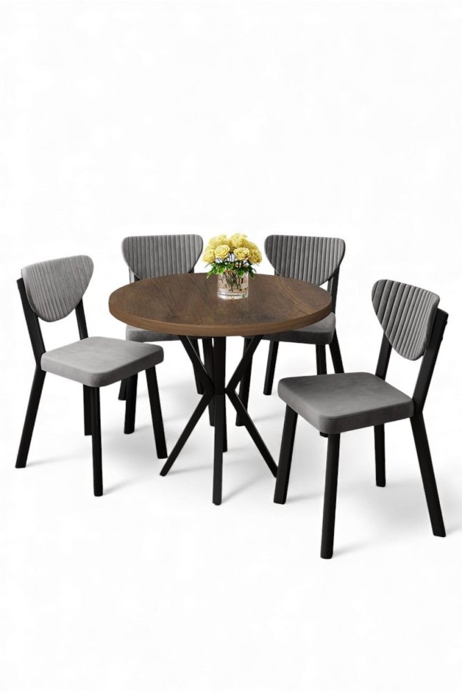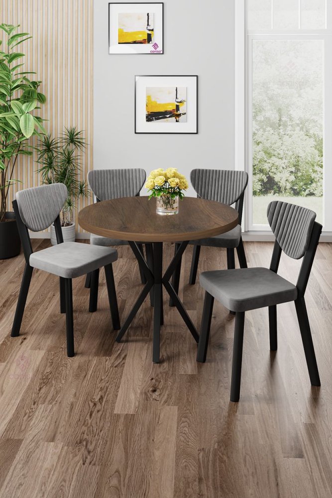 | Specifikacija | Set trpezarijskog stola i stolica (5 delova) Agnes Baroque Grey 100% Iverica sa melaminskim premazom Metalne nogare Okvir stolice: Šperploča / Metal Materijal: Mekana tkanina Trpezarijski sto: Širina: 90 cm Visina: 73 cm Dubina: 90 cm (1 komad) Stolica: Širina: 45 cm Visina: 86 cm Dubina: 46 cm (4 komada) Visina sedišta: 48 cm 22 DNS pena za leđa / 28 DNS pena za sedenje Broj pakovanja: 2 100 x 100 x 11 cm / 10 kg (1 komad) 101 x 76 x 26 cm / 30 kg (1 komad) |