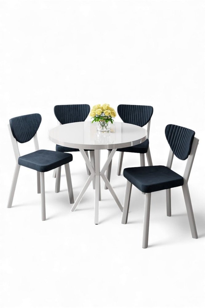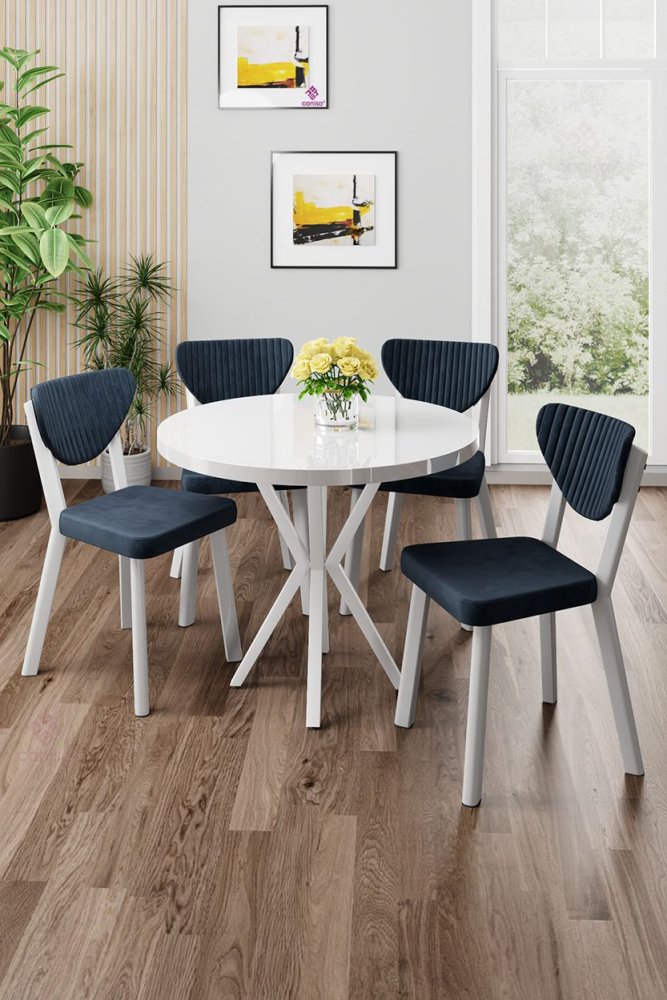 | Specifikacija | Set trpezarijskog stola i stolica (5 delova) Agnes White Anthracite 100% Iverica sa melaminskim premazom Metalne nogare Okvir stolice: Šperploča / Metal Materijal: Mekana tkanina Trpezarijski sto: Širina: 90 cm Visina: 73 cm Dubina: 90 cm (1 komad) Stolica: Širina: 45 cm Visina: 86 cm Dubina: 46 cm (4 komada) Visina sedišta: 48 cm 22 DNS pena za leđa / 28 DNS pena za sedenje Broj pakovanja: 2 100 x 100 x 11 cm / 10 kg (1 komad) 101 x 76 x 26 cm / 30 kg (1 komad) |