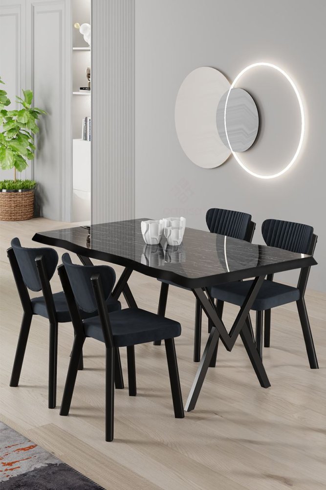 | Specifikacija | Set trpezarijskog stola i stolica (5 delova) Akort Black Marble Anthracite 100% MDF Metalne nogare Okvir stolice: Šperploča / METAL Materijal: Mekana tkanina Trpezarijski sto: Širina: 130 cm Visina: 73 cm Dubina: 130 cm (1 komad) Stolica: Širina: 45 cm Visina: 86 cm Dubina: 46 cm (4 komada) Visina sedišta: 48 cm (4 komada) 22 DNS pena za leđa / 28 DNS pena za sedenje Broj pakovanja: 2 137 x 88 x 11 cm / 21 kg (1 komad) 101 x 76 x 26 cm / 30 kg (1 komad) |