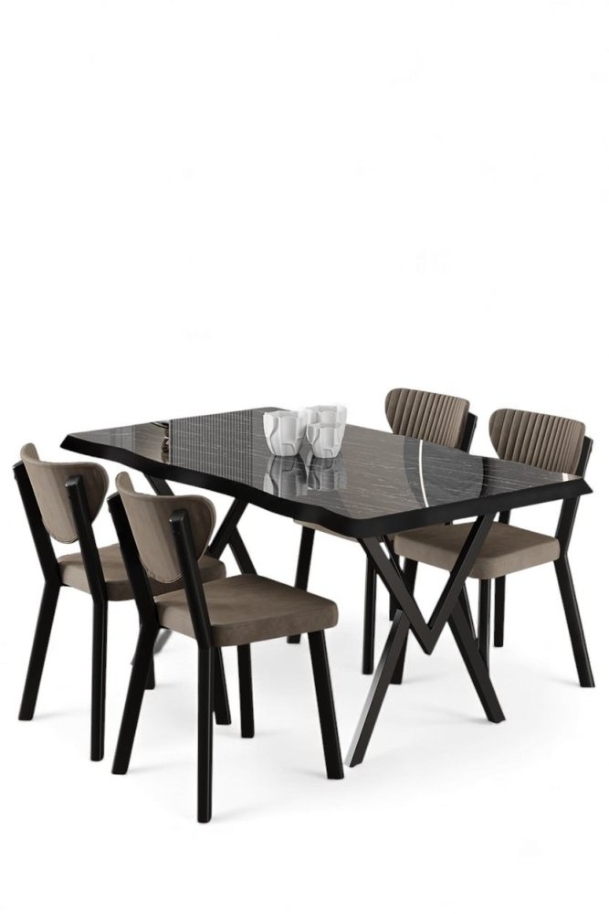| Specifikacija | Set trpezarijskog stola i stolica (5 delova) Akort Black Marble Cappuccino 100% MDF Metalne nogare Okvir stolice: Šperploča / METAL Materijal: Mekana tkanina Trpezarijski sto: Širina: 130 cm Visina: 73 cm Dubina: 130 cm (1 komad) Stolica: Širina: 45 cm Visina: 86 cm Dubina: 46 cm (4 komada) Visina sedišta: 48 cm (4 komada) 22 DNS pena za leđa / 28 DNS pena za sedenje Broj pakovanja: 2 137 x 88 x 11 cm / 21 kg (1 komad) 101 x 76 x 26 cm / 30 kg (1 komad) |