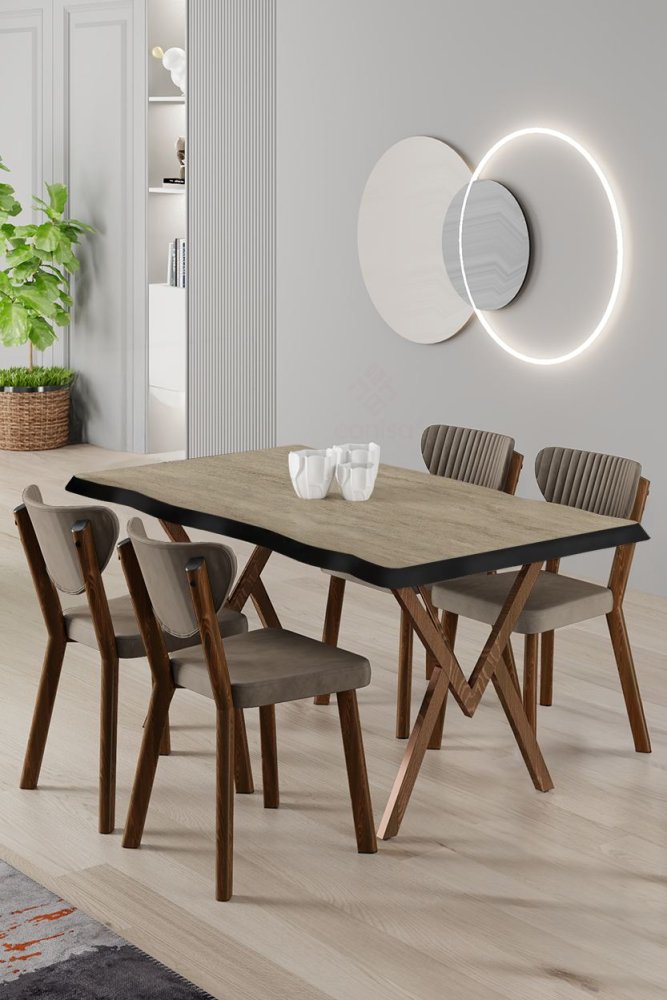 | Specifikacija | Set trpezarijskog stola i stolica (5 delova) Akort Travertine Cappuccino 100% MDF Metalne nogare Okvir stolice: Šperploča / METAL Materijal: Mekana tkanina Trpezarijski sto: Širina: 130 cm Visina: 73 cm Dubina: 130 cm (1 komad) Stolica: Širina: 45 cm Visina: 86 cm Dubina: 46 cm (4 komada) Visina sedišta: 48 cm (4 komada) 22 DNS pena za leđa / 28 DNS pena za sedenje Broj pakovanja: 2 137 x 88 x 11 cm / 21 kg (1 komad) 101 x 76 x 26 cm / 30 kg (1 komad) |