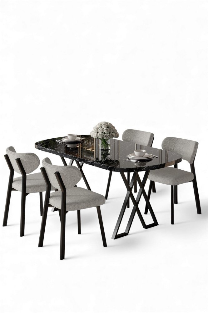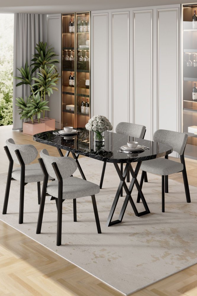 | Specifikacija | Set trpezarijskog stola i stolica (5 delova) Axton Black Marble Grey 100% MDF Metalne nogare Okvir stolice: Šperploča / METAL Materijal: Bukle Trpezarijski sto: Širina: 168 cm Visina: 76 cm Dubina: 90 cm (1 komad) Stolica: Širina: 46 cm Visina: 85 cm Dubina: 45 cm (4 komada) Visina sedišta: 49 cm 22 DNS pena za leđa / 28 DNS pena za sedenje Broj pakovanja: 3 173 x 9 x 95 cm / 25 kg (1 komad) 11 x 75 x 62 cm / 6 kg (1 komad) 101 x 76 x 26 cm / 30 kg (1 komad) |