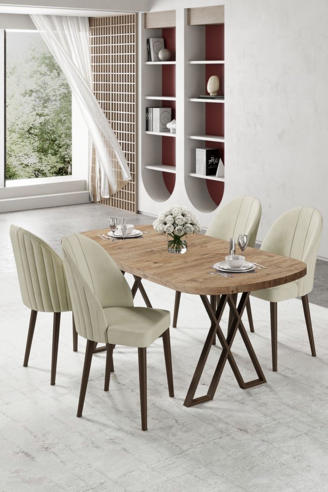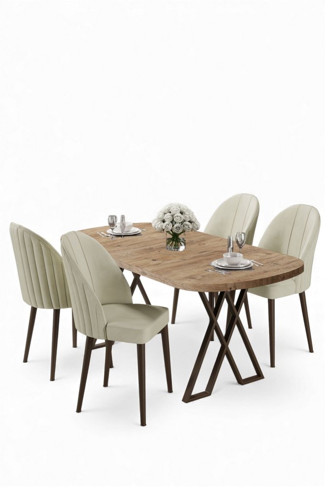 | Specifikacija | Set trpezarijskog stola i stolica (5 delova) Kaye Atlantic Pine Cream 100% MDF Metalne nogare Ram stolice: METAL Materijal: Mekana tkanina Trpezarijski sto: Širina: 168 cm Visina: 76 cm Dubina: 90 cm (1 komad) Stolica: Širina: 44 cm Visina: 90 cm Dubina: 42 cm (4 komada) Visina sedišta: 47 cm Visina nogara: 43 cm 22 DNS pena za leđa / 28 DNS pena za sedenje Broj pakovanja: 4 173 x 9 x 95 cm / 25 kg (1 komad) 11 x 75 x 62 cm / 6 kg (1 komad) 85 x 59 x 50 cm / 18 kg (1 komad) 62 x 48 x 56 cm / 10 kg (1 komad) |