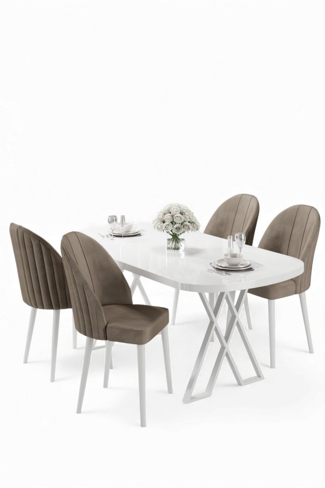 | Specifikacija | Set trpezarijskog stola i stolica (5 delova) Kaye White Cappuccino 100% MDF Metalne nogare Ram stolice: METAL Materijal: Mekana tkanina Trpezarijski sto: Širina: 168 cm Visina: 76 cm Dubina: 90 cm (1 komad) Stolica: Širina: 44 cm Visina: 90 cm Dubina: 42 cm (4 komada) Visina sedišta: 47 cm Visina nogara: 43 cm 22 DNS pena za leđa / 28 DNS pena za sedenje Broj pakovanja: 4 173 x 9 x 95 cm / 25 kg (1 komad) 11 x 75 x 62 cm / 6 kg (1 komad) 85 x 59 x 50 cm / 18 kg (1 komad) 62 x 48 x 56 cm / 10 kg (1 komad) |